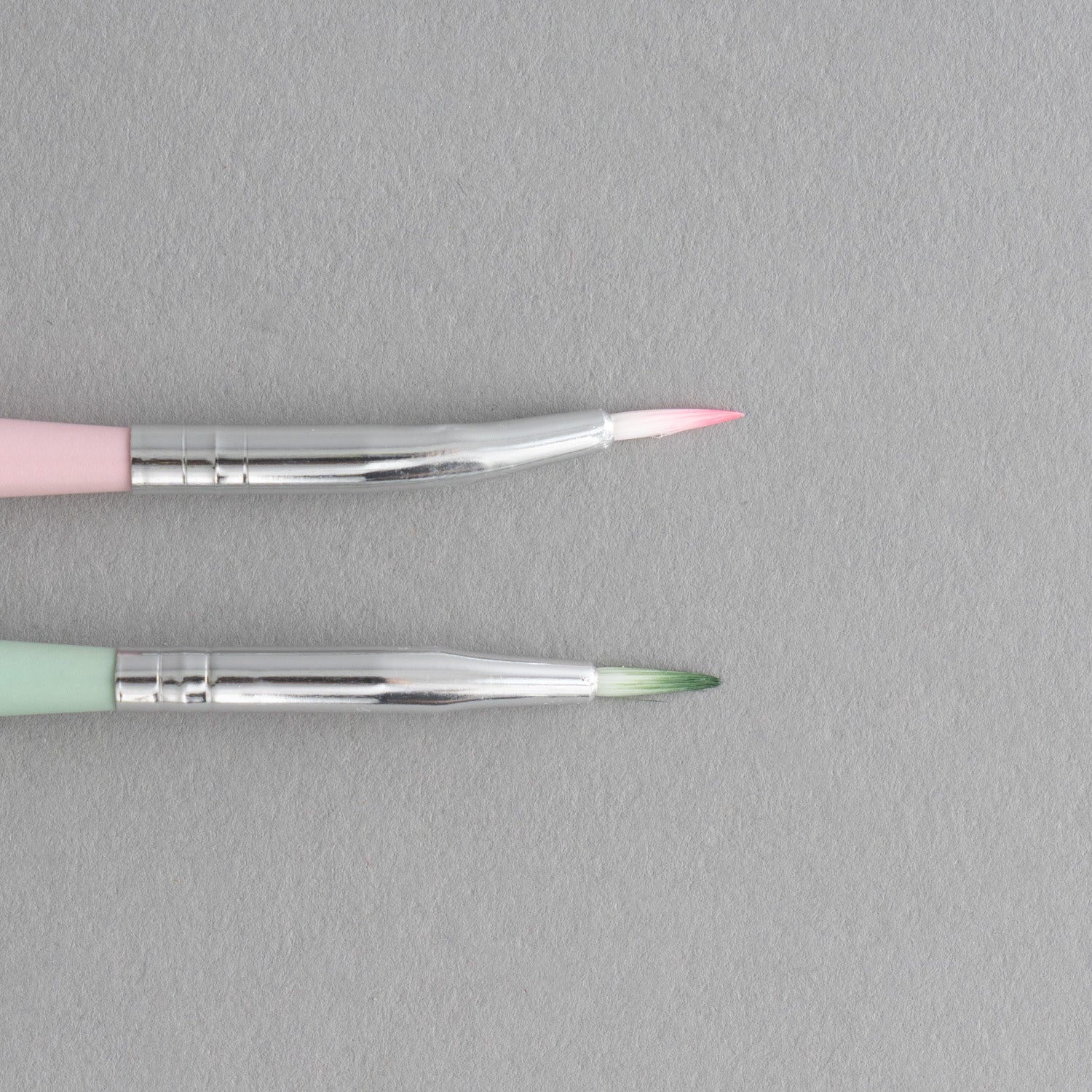 - W zestawie znajdują się dwa pędzle: jeden w kolorze różowym, drugi w kolorze zielonym.