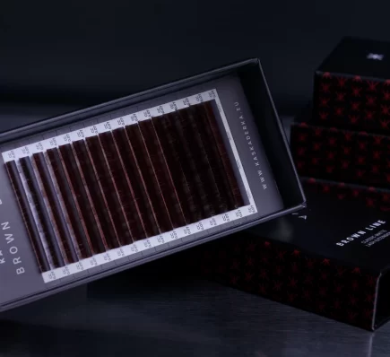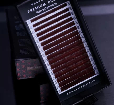Brązowe rzęsy są szczególnie uwielbiane za naturalny efekt, soft glam oraz perfekcyjne dopasowanie do jasnych typów urody, blondynek, szatynek i klientek o delikatnej oprawie oka.