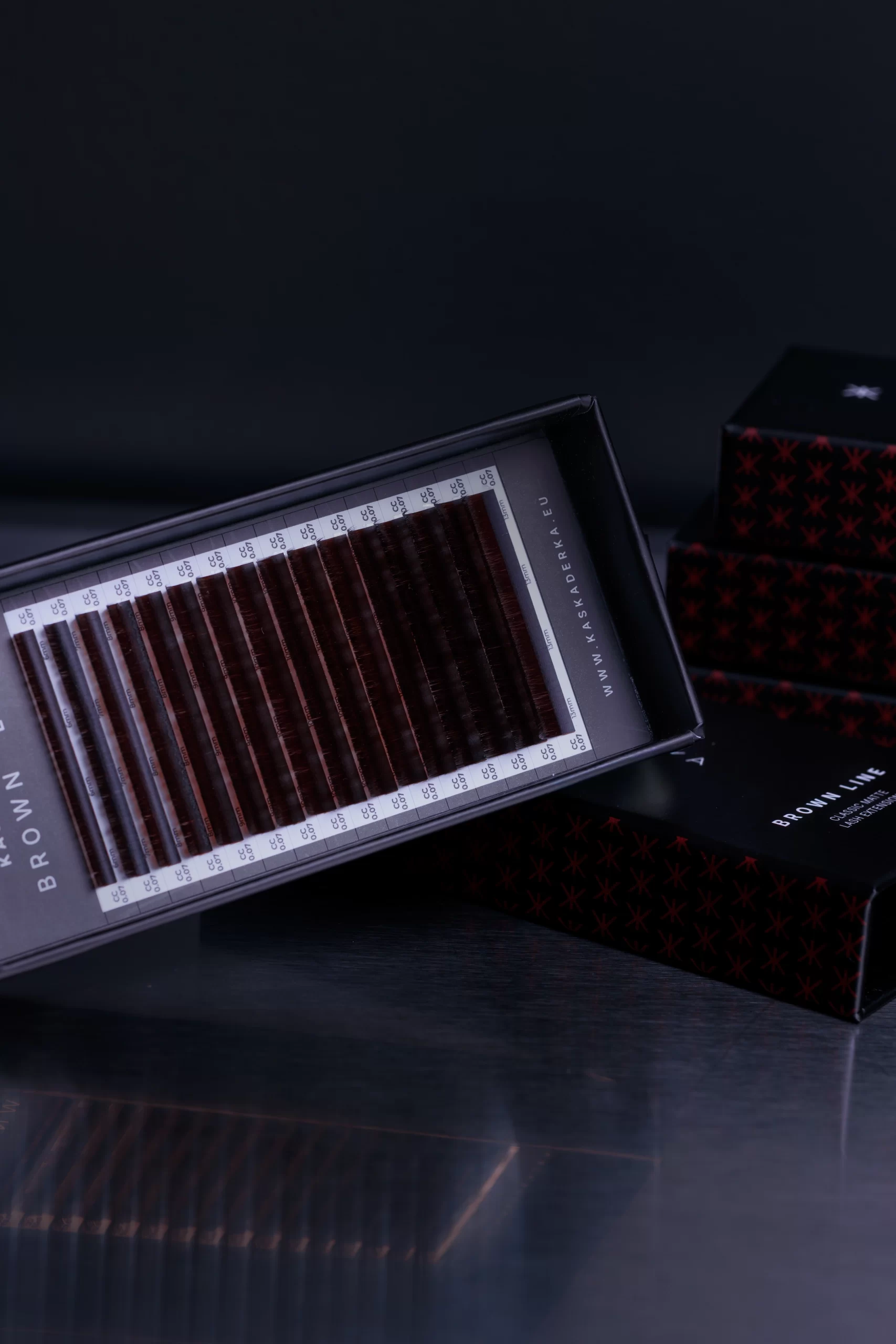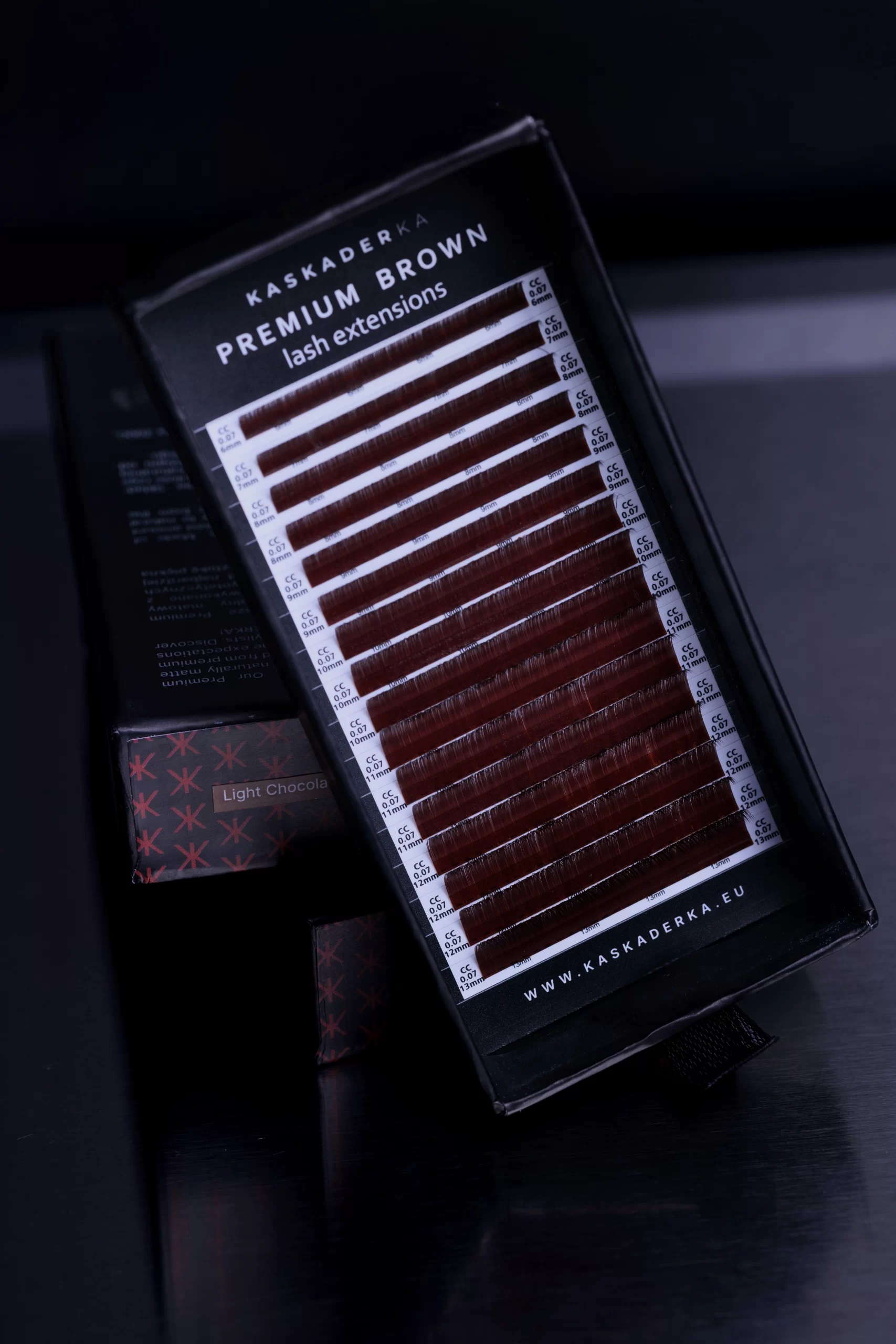 Poznaj naturalnie matowe, jedwabiście miękkie i głęboko nasycone ciemnym brązem rzęsy do przedłużania CLASSIC MATTE DARK BROWN KASKADERKA®.